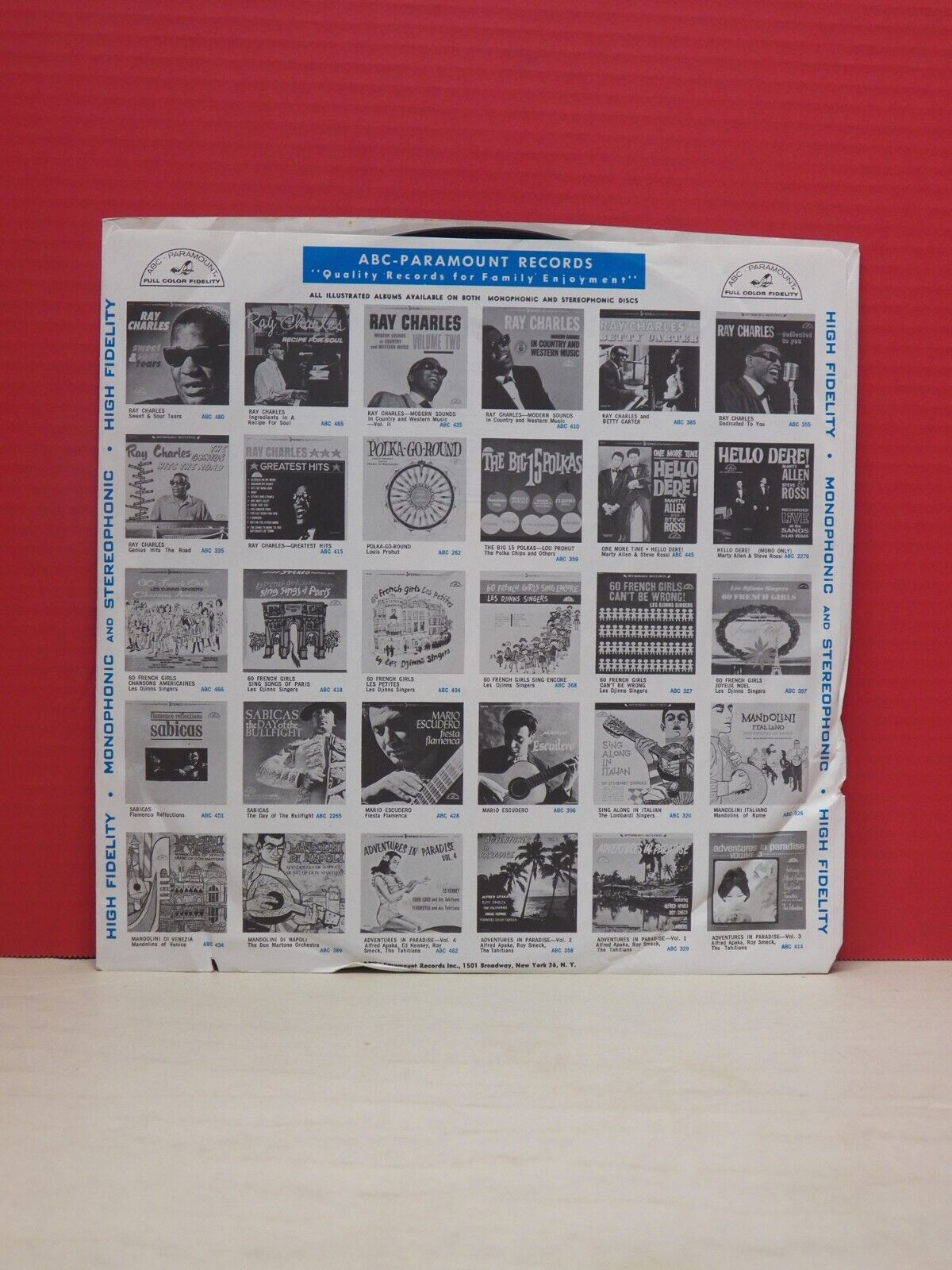 ABC-Paramount inner ad sleeve, creases in sleeve (See Photos).