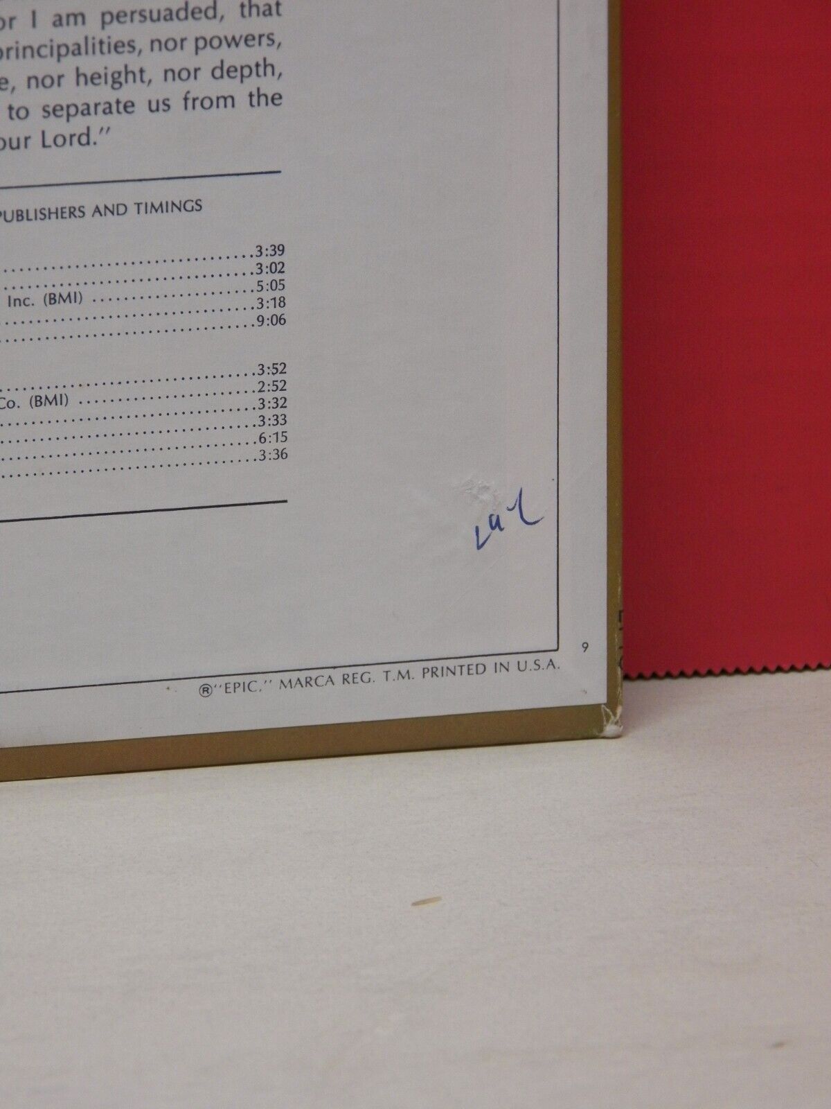 Writing in blue ink on back cover (See Photos).