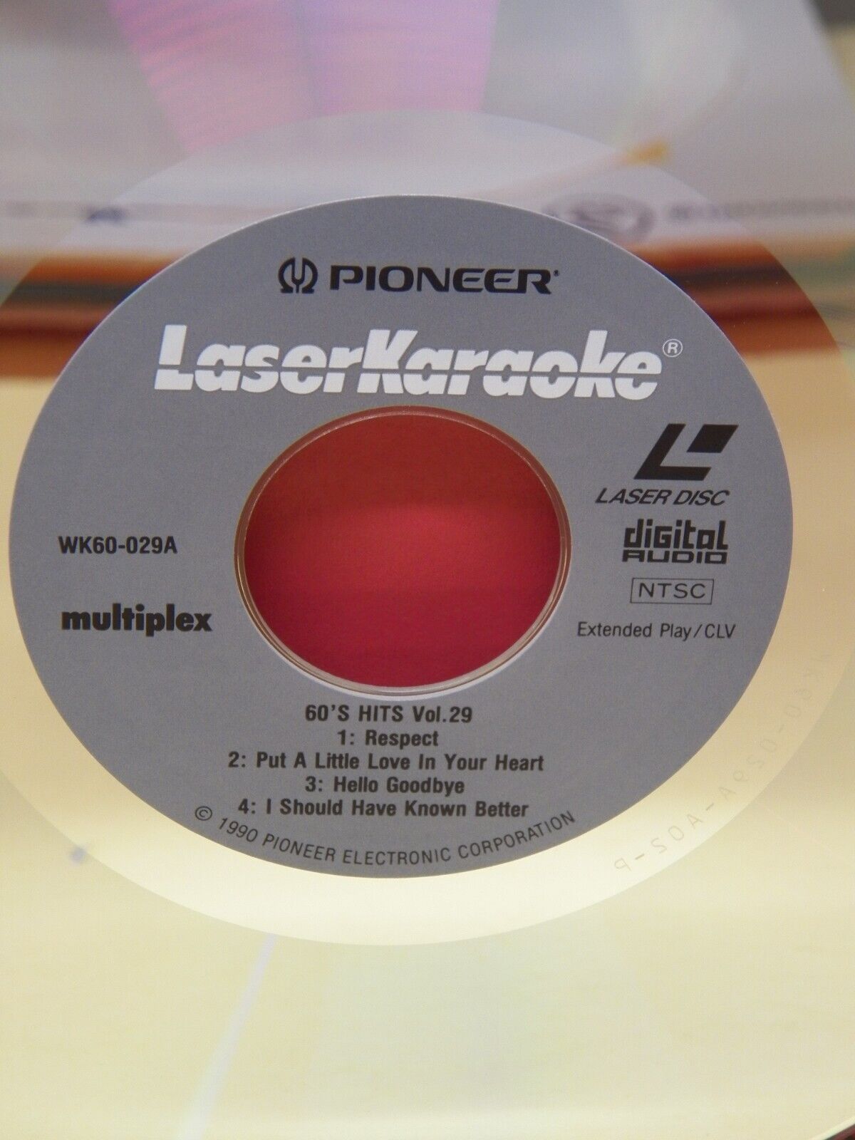 All discs are reflective on both sides except 'Laser Karaoke Video Sing-along,' which has one reflective side and one white side.