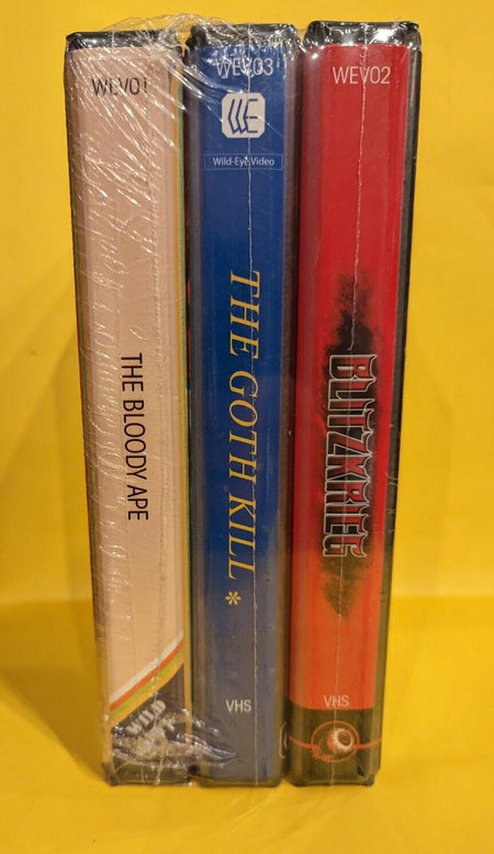 Rare Sealed 3 Horror VHS Set Wild Eye Video Bloody Ape / Goth Kill / Blitzkrieg