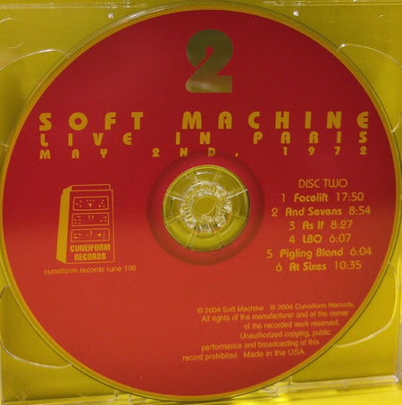 Soft Machine - Live In Paris May 2nd, 1972 - 2004 - Rune 195/196 - Used - EX - CDs - 2xCD - Reissue